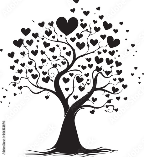 Obraz premium tree with hearts Silhouette Vector Illustration