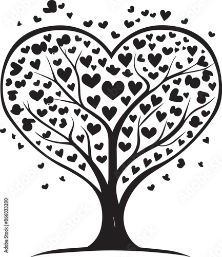 Obraz premium tree with hearts Silhouette Vector Illustration