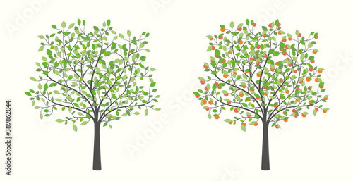 © ugarich, Obraz premium Tree with leaves and fruit in two design options