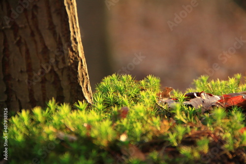 © Juraj, Fototapeta premium Tree with moss close up in sun
