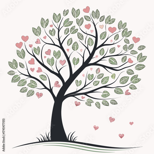 © David, Fototapeta premium Tree with pink hearts and green leaves