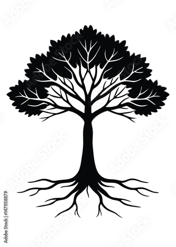 © Mst Alaya, Obraz premium Tree with Roots Silhouette on White Background