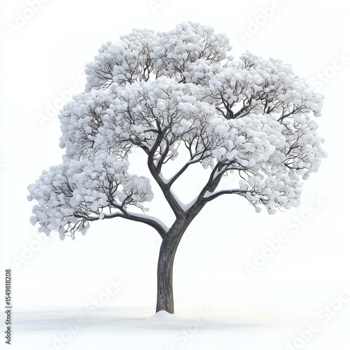 Fototapeta premium Tree with snowy branches, isolated on white background