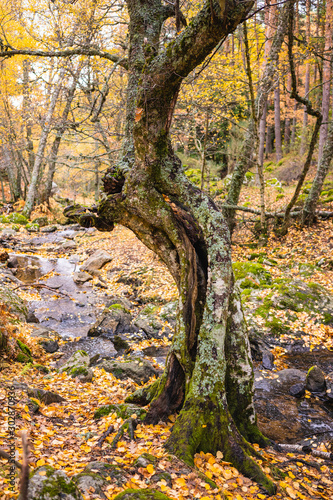 © GaiBru Photo, Obraz premium Tree with twisted trunk in a birch grove