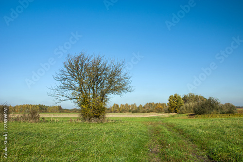 © darekb22, Obraz premium Tree without leaves on a green meadow