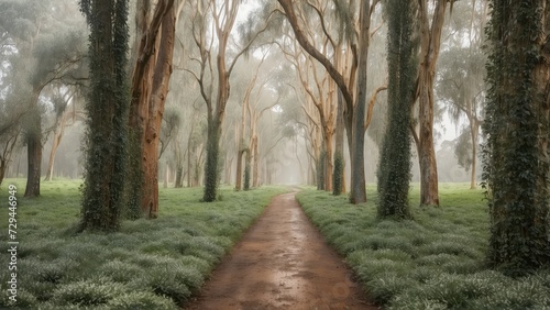 Fototapeta premium treelined pathway, eucalyptus grove, wedding backdrop, maternity backdrop,...
