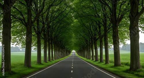 Obraz premium Treelined Road Vanishing Into the Distance Surrounded by Greenery