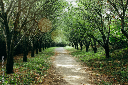 Naklejka premium Trees along the empty pathway in the park