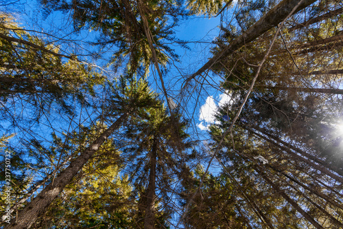 © myper, Obraz premium Trees and sky view in the forest