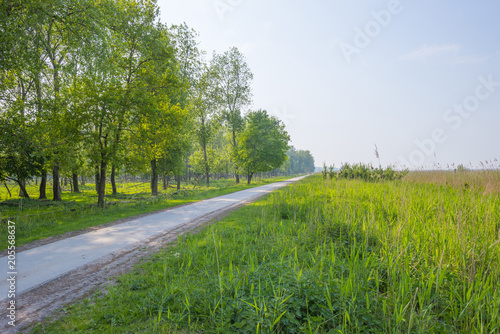 Fototapeta premium Trees and wild flowers in a field in sunlight in spring