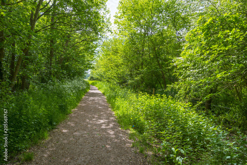 Fototapeta premium Trees and wild flowers in a field in sunlight in spring