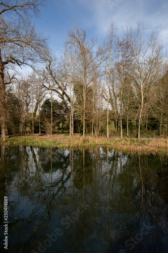 © paula sierra, Obraz premium Trees are reflected in a pond