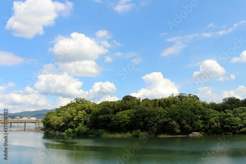 © leodaphne, Obraz premium Trees around Okayama Korakuen Garden and its reflection across the complex
