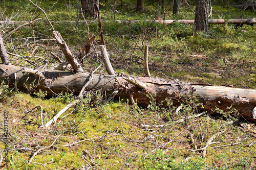Fototapeta premium Trees broken by strong wind in the forest