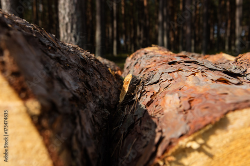 © agnieszka_marcinska, Obraz premium Trees chopped and stacked in forest