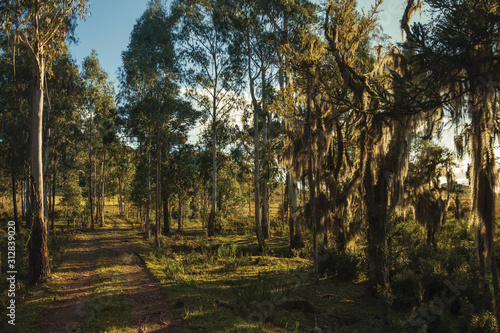 © Celli07, Fototapeta premium Trees covered by lichen and wooden farm gate