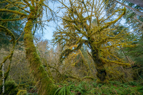 Fototapeta premium Trees covered in moss in a temperate Hoh Rain Forest. Olympic National Park, Washington state, USA