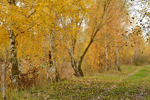 © Михаил Жигалин, Fototapeta premium Trees growing along the lake on the shore.
