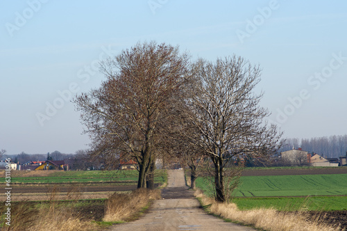 Fototapeta premium Trees growing along the old ruined road,Silesia region,Poland