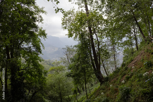 © alejandro, Obraz premium Trees in a forest landscape with blue sky on the parck. Hidalgo, México