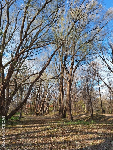 © Sarah, Fototapeta premium Trees in a forest on a sunny autumn day