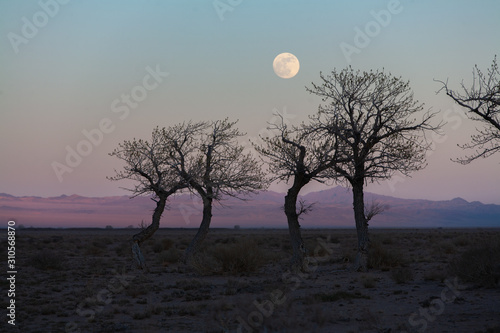 Obraz premium trees in a nature of western Mongolia in the evening