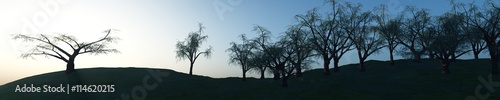Fototapeta premium Trees in a row on a hill, Sunset in the trees