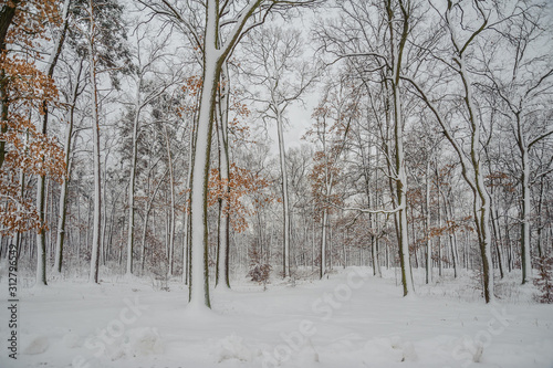 © Vitaliy, Fototapeta premium Trees in a snowy winter forest