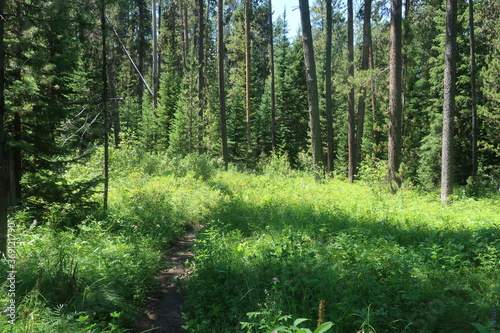 Obraz premium Trees in an overgrown forest path