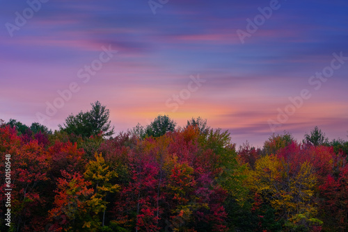 © CK, Naklejka premium Trees in autumn colors in a violet sunrise,