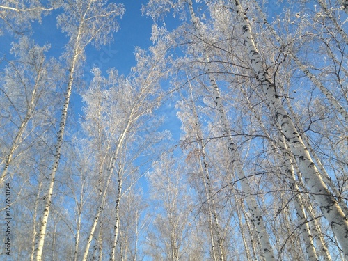 Fototapeta premium Trees in hoarfrost in winter forest