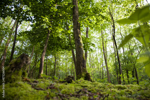 © Rens, Obraz premium Trees in lush decidious forest in Alsace, France