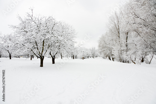 © Rafal Olechowski, Fototapeta premium Trees in park covered by snow