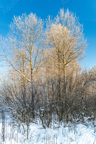 © Art L, Fototapeta premium Trees in the Białowieża Forest in winter.
