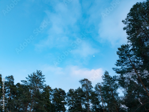 © Binkontan, Fototapeta premium Trees in the forest. Clouds over the forest in winter.