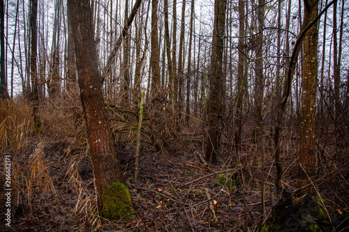 © marcinmaslowski, Fototapeta premium trees in the forest during the rainy season, closeup