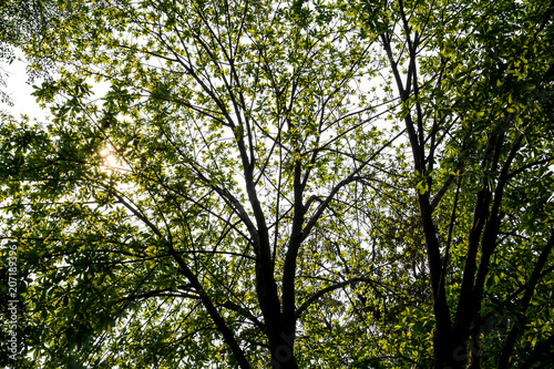 Fototapeta premium trees in the forest - nature green wood and sunlight backgrounds.