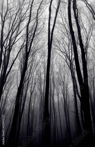 Obraz premium Trees in the misty forest.
