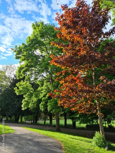 © Nabila, Naklejka premium Trees in the Park with Blue Sky and Clouds