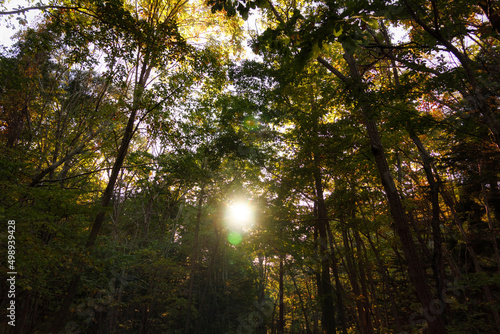 © KSSM tomo, Obraz premium Trees in the woods with sunlight