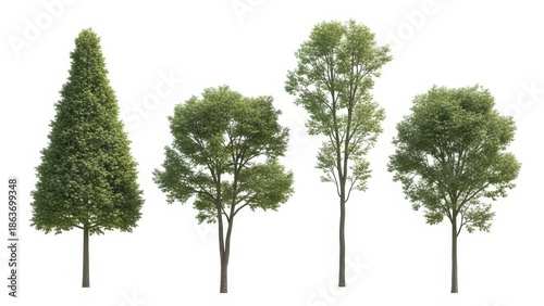 Obraz premium Trees Isolated on White Diverse Green Trees, Cutout, PNG for Design