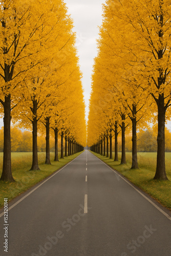 © Dilbar, Fototapeta premium Trees lining an autumn road.