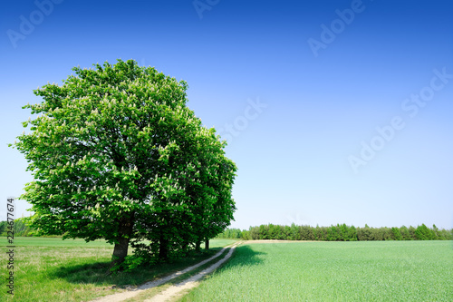 © Trutta, Fototapeta premium Trees next to a rural road running among green fields