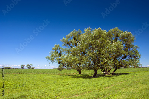 © darekb22, Fototapeta premium Trees on a meadow and blue sky