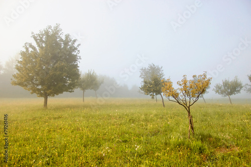 Fototapeta premium Trees on Misty Meadow