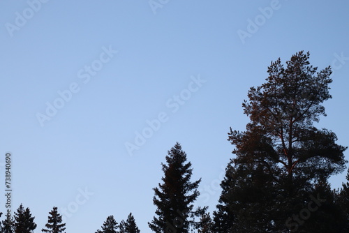Obraz premium trees on the sky. Pineforest in winter.
