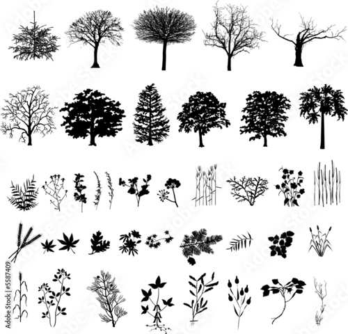 © Natalia Hudyma, Fototapeta premium Trees, plants and flower, black silhouette