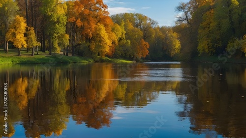 Fototapeta premium Trees Reflected in Blue Waters of Lakes and Rivers Amidst Nature's Landscape