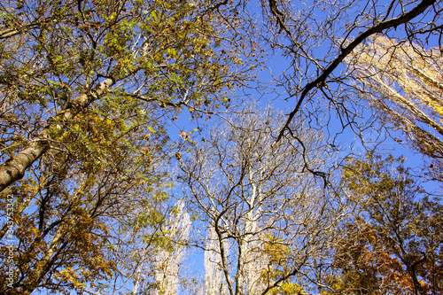 © Marc, Fototapeta premium Trees seen from below with blue sky on a nice day