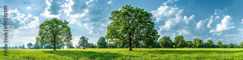 © Maryna, Obraz premium Trees Sky. Summer Park Landscape with Green Meadow and Trees